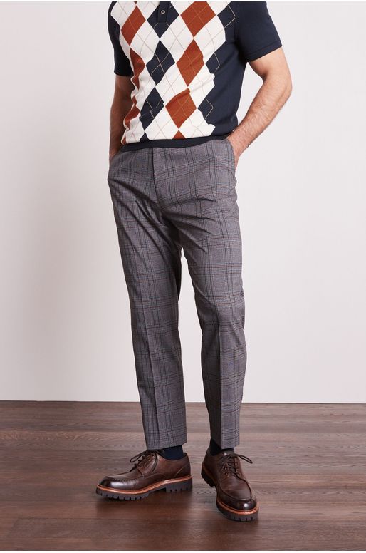 Design: check pattern, front pleatsModel: 6’4″/193cm and wears 32R / waist 77-82cm, length 81cm